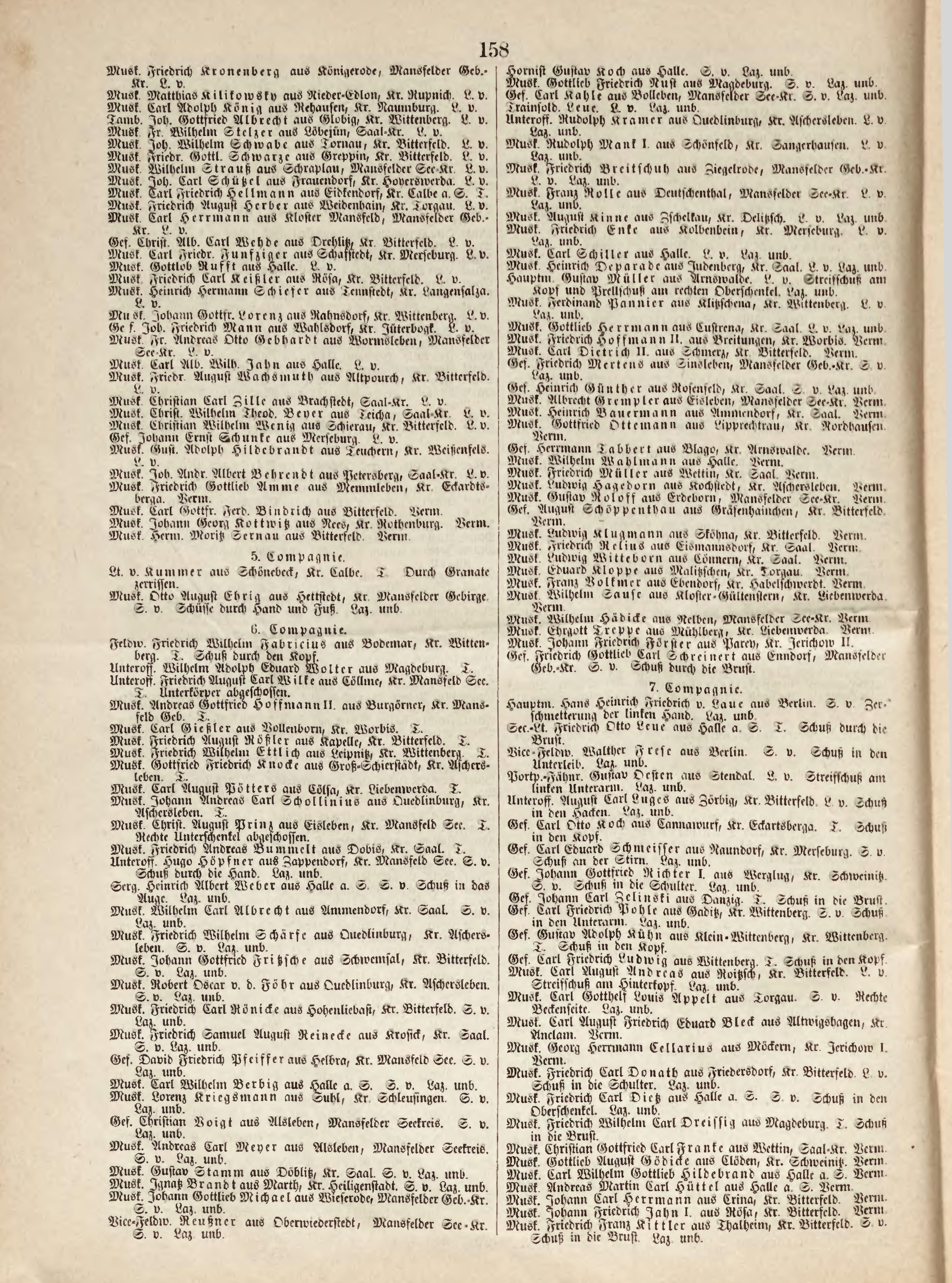 Verlustlisten der Preußischen Armee 1866, page 158: Kinne August (Zschelkau, Kr. Delitzsch) Verlustlisten der Preußischen Armee 1866