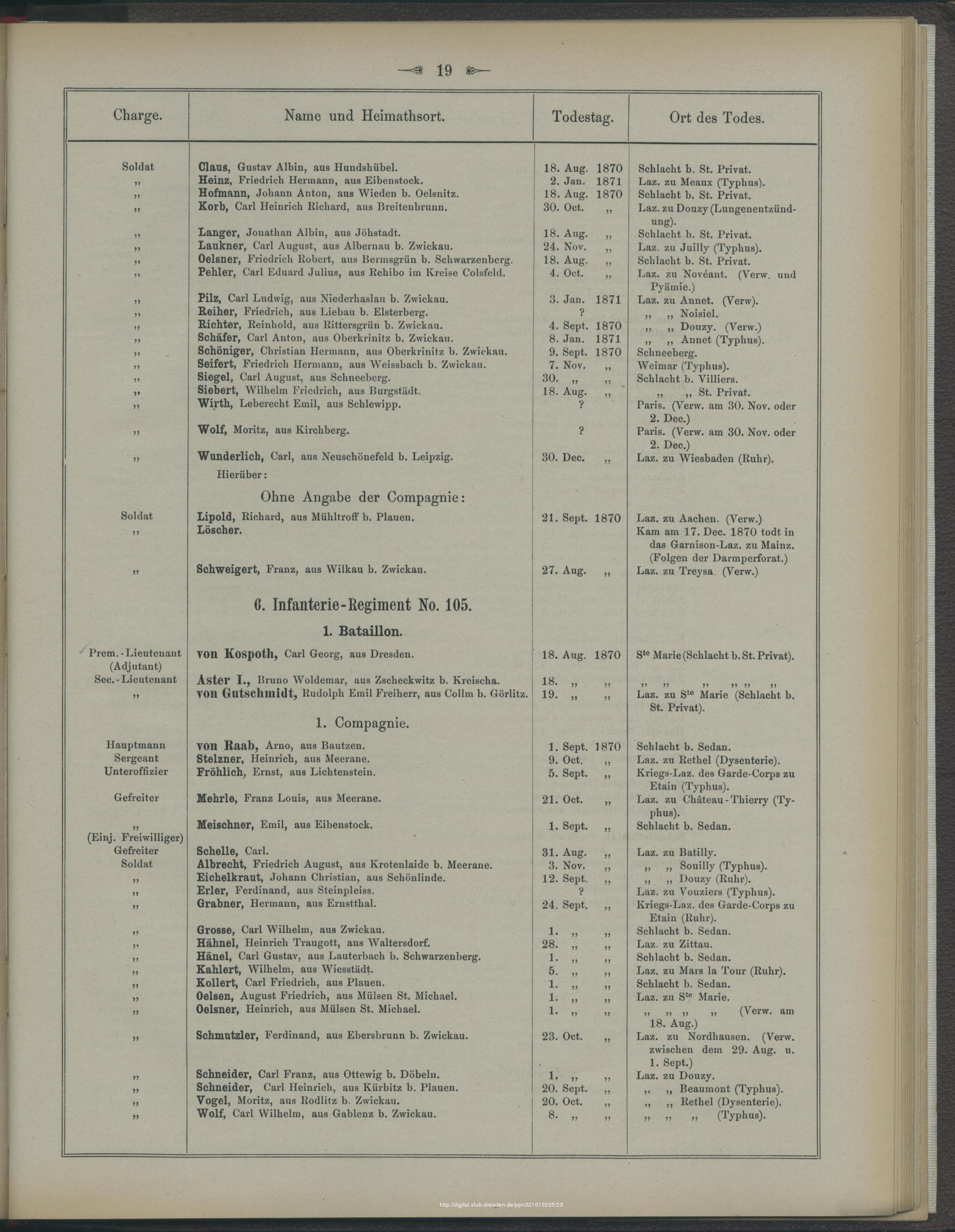 Verlustlisten Sachsen 1870/71, page I-19: Eichelkraut Johann Christian (Schönlinde) Verlustlisten Sachsen 1870/71