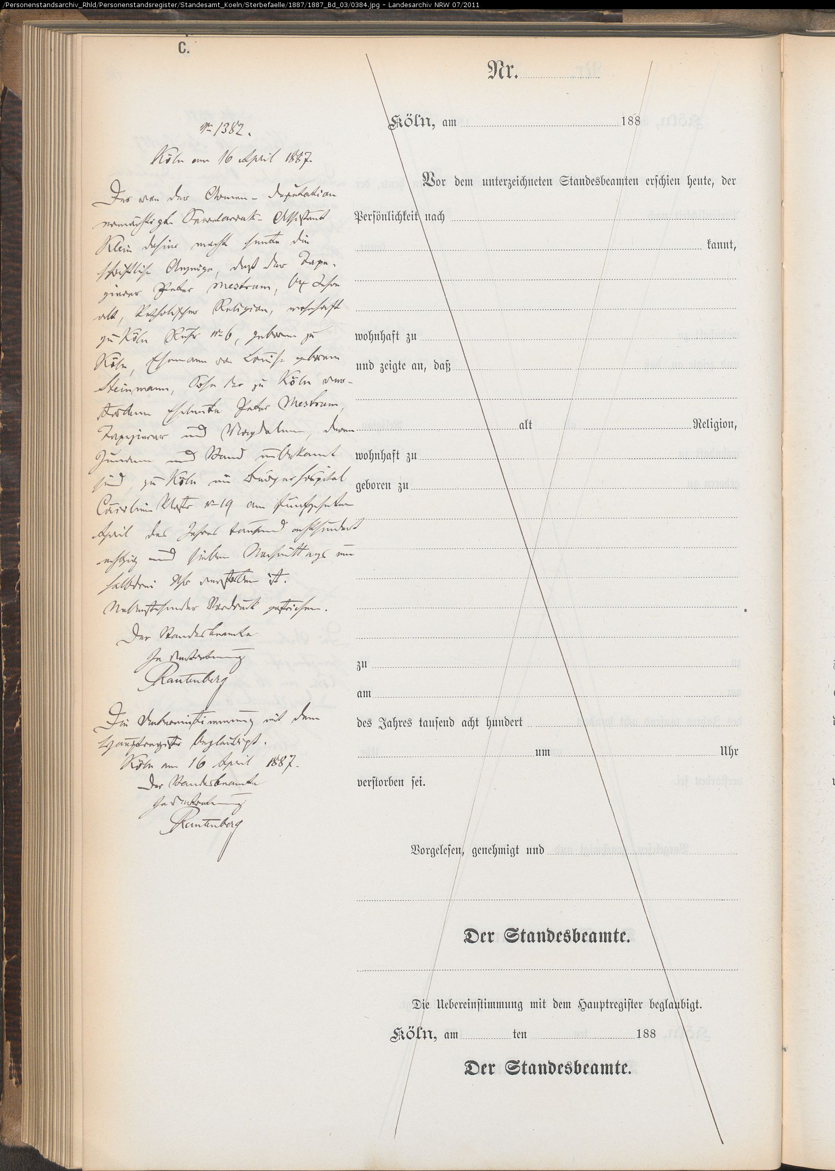 Köln Sterbeurkunden, page 1887-03-0384: Mestrum Peter (1382) Köln Sterbeurkunden