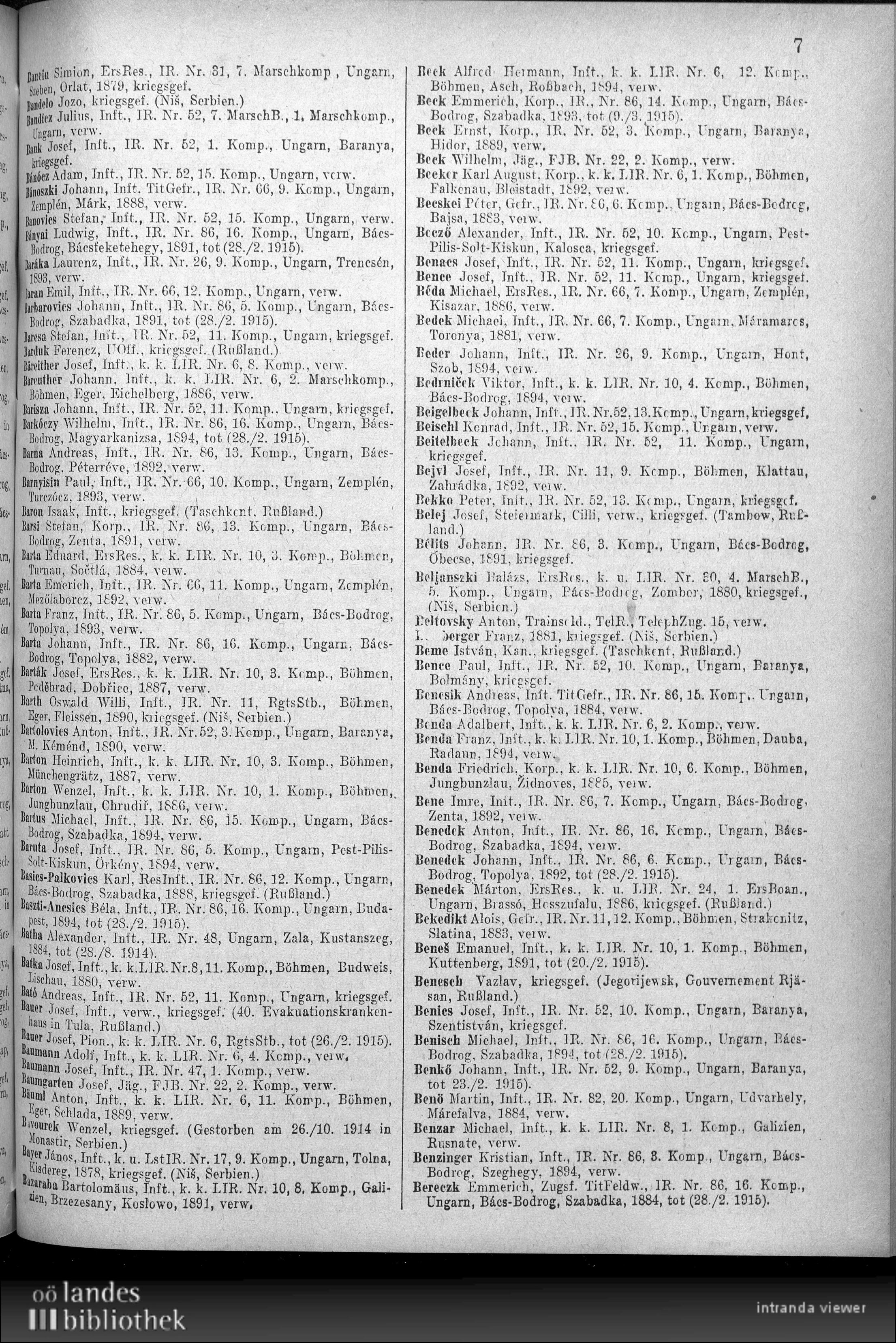 Verlustlisten Österreich-Ungarn 1. WK, page 155_07: Benzinger Kristian (Mannschaft) Verlustlisten Österreich-Ungarn 1. WK