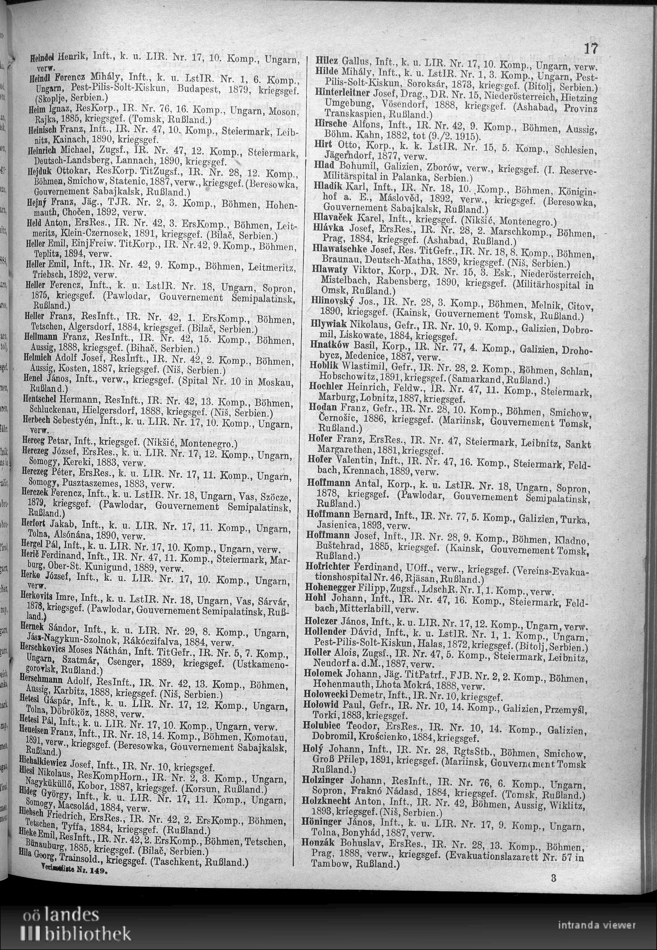 Verlustlisten Österreich-Ungarn 1. WK, page 149_17: Hohl Johann (Mannschaft) Verlustlisten Österreich-Ungarn 1. WK