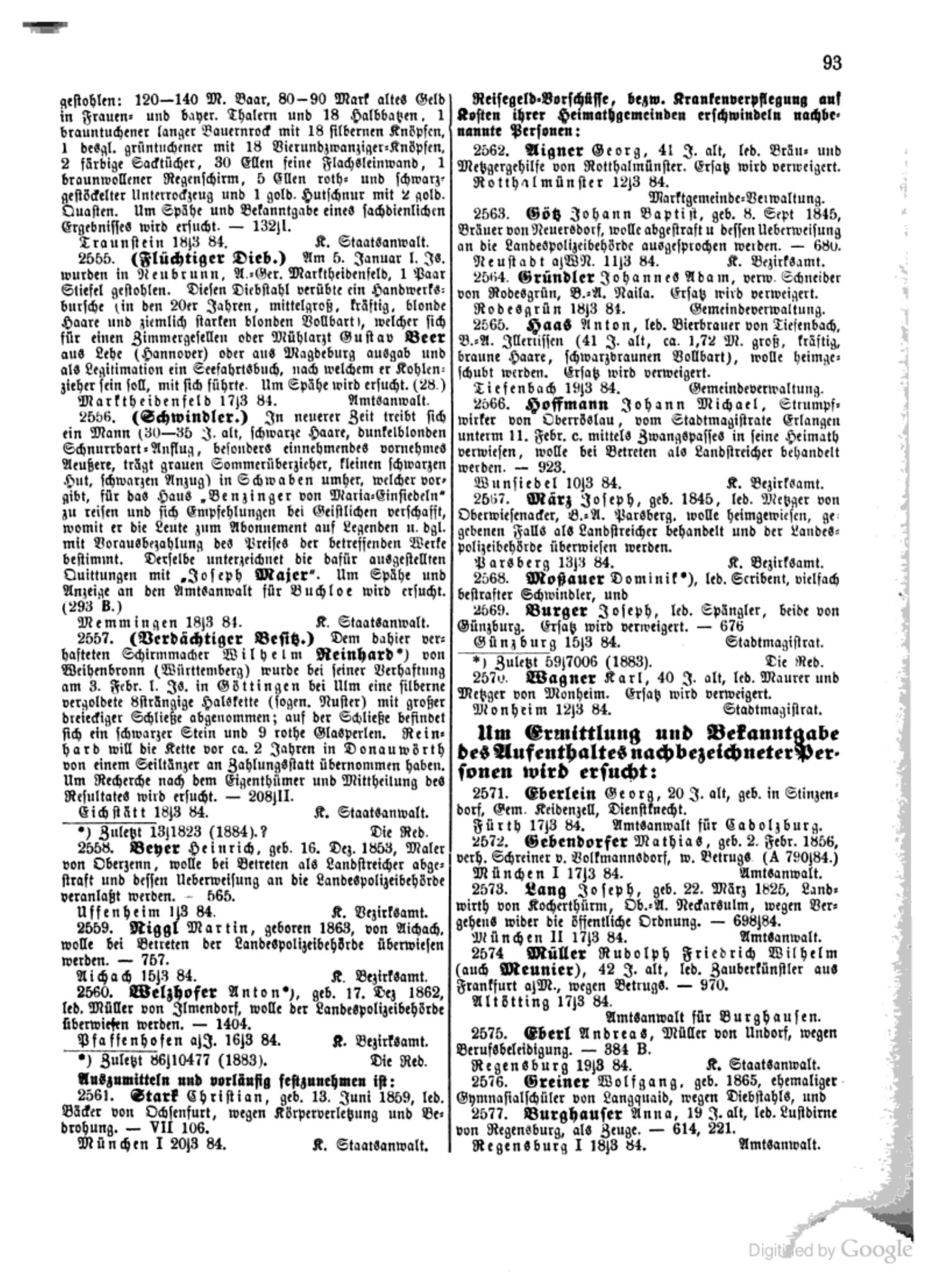 Bayer. Central-Polizei-Blätter ab 1872, page 1884-93: Benzinger () Bayer. Central-Polizei-Blätter ab 1872