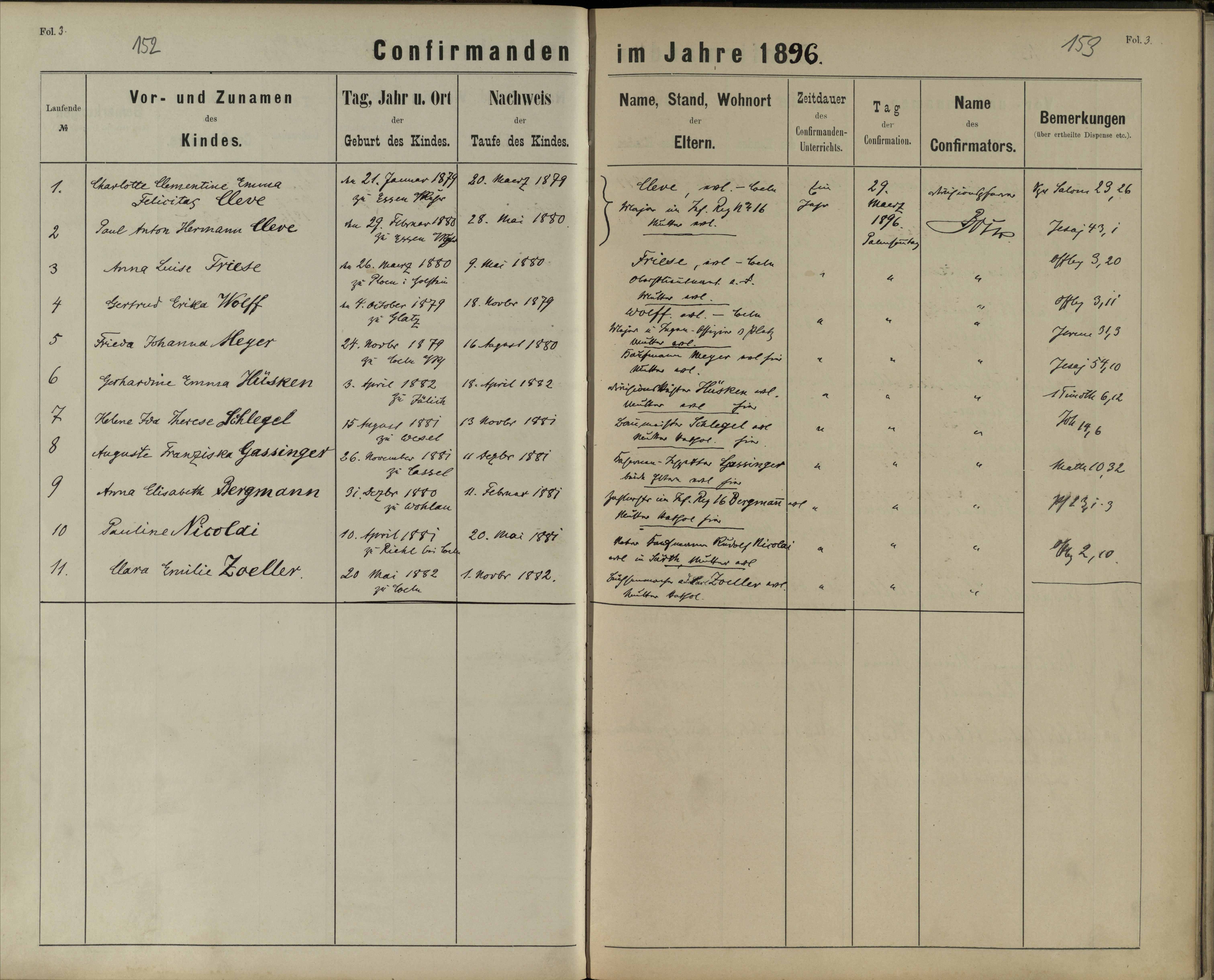 Kirchenbücher Garnison Köln, page I_14j_0059-Confirmanden: Gassinger (8)