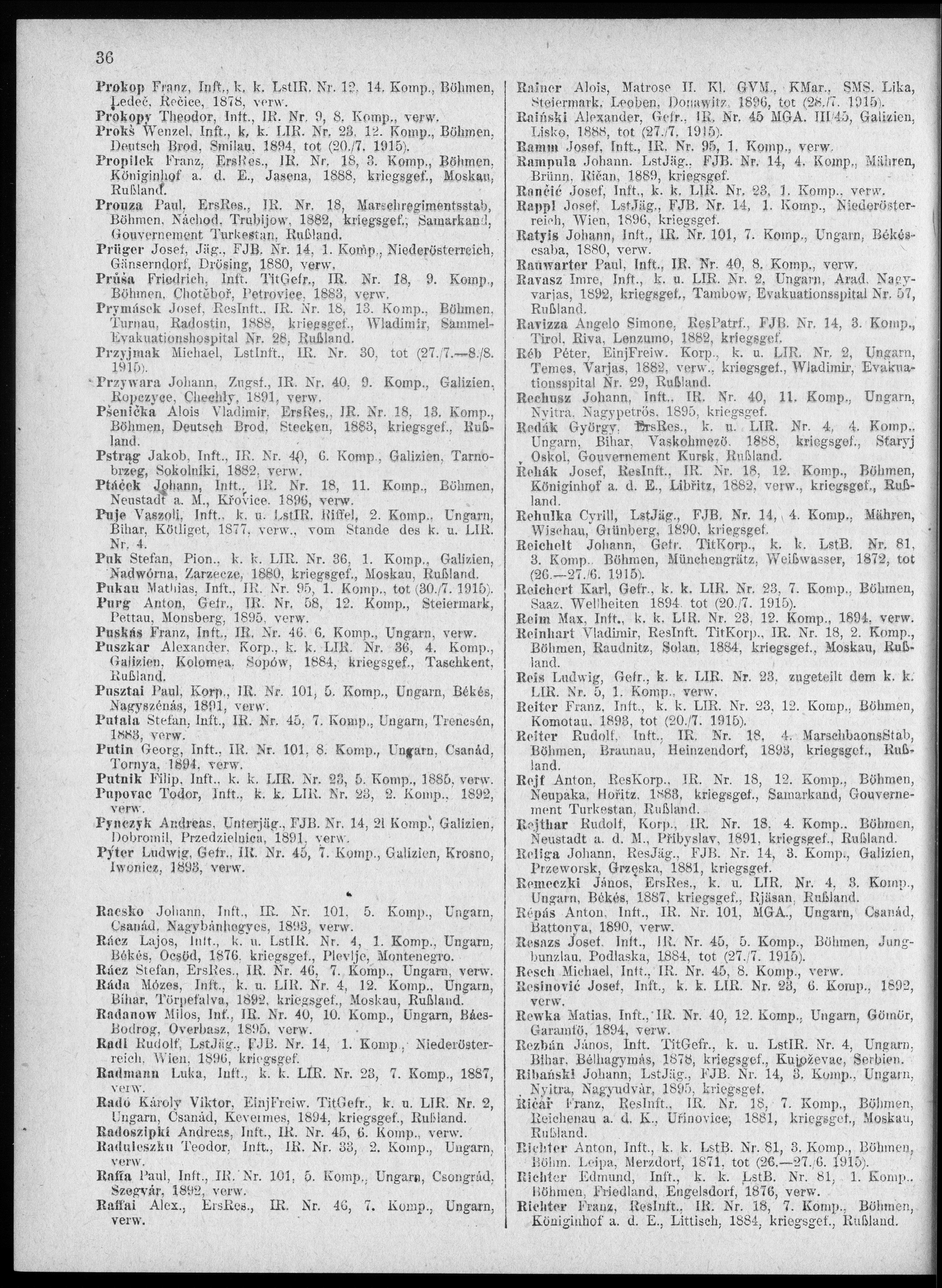 Verlustlisten Österreich-Ungarn 1. WK, page 269_36: Ramm Josef (Mannschaft) Verlustlisten Österreich-Ungarn 1. WK