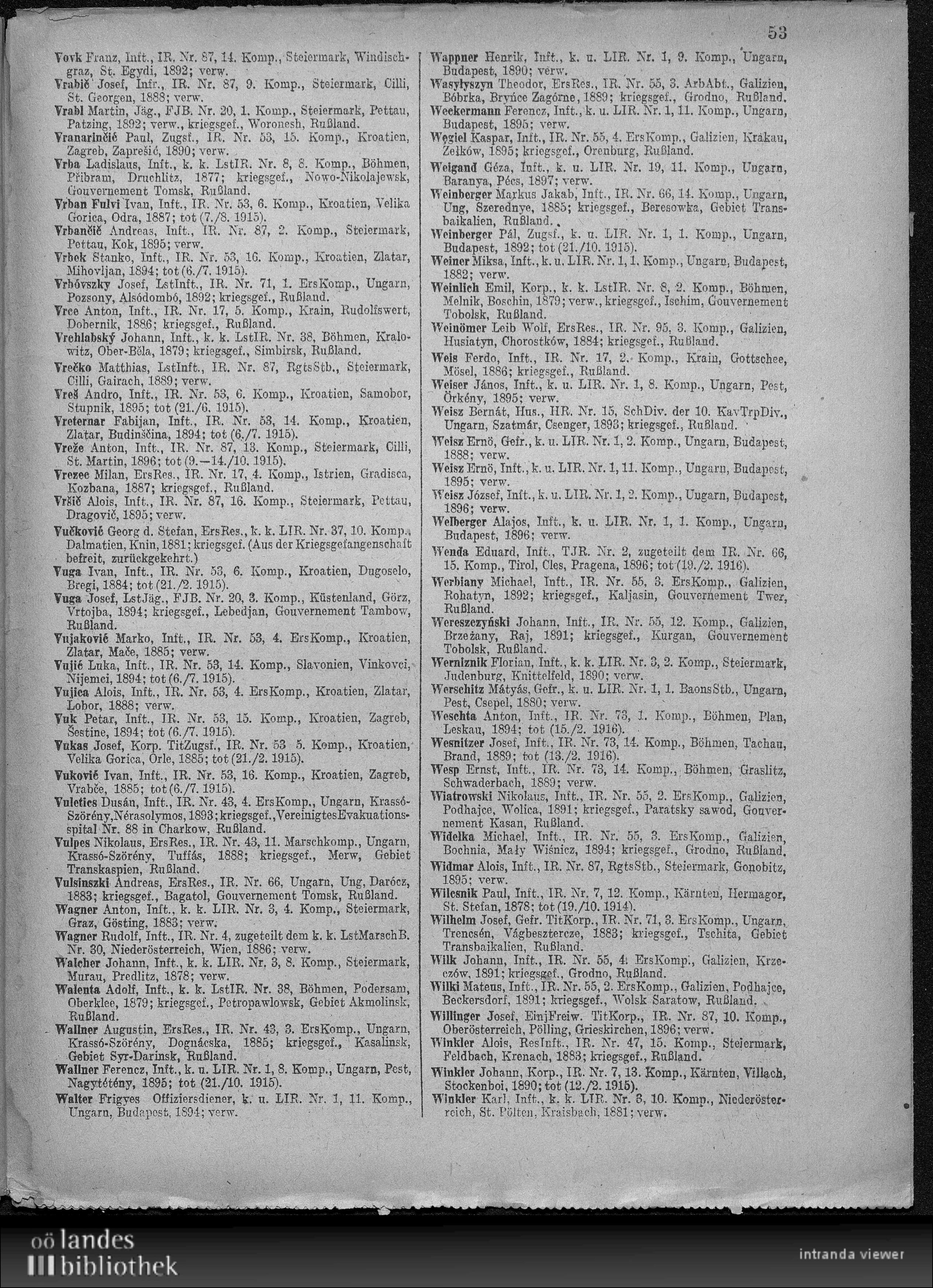 Verlustlisten Österreich-Ungarn 1. WK, page 402_53: Widmar Alois (Mannschaft) Verlustlisten Österreich-Ungarn 1. WK