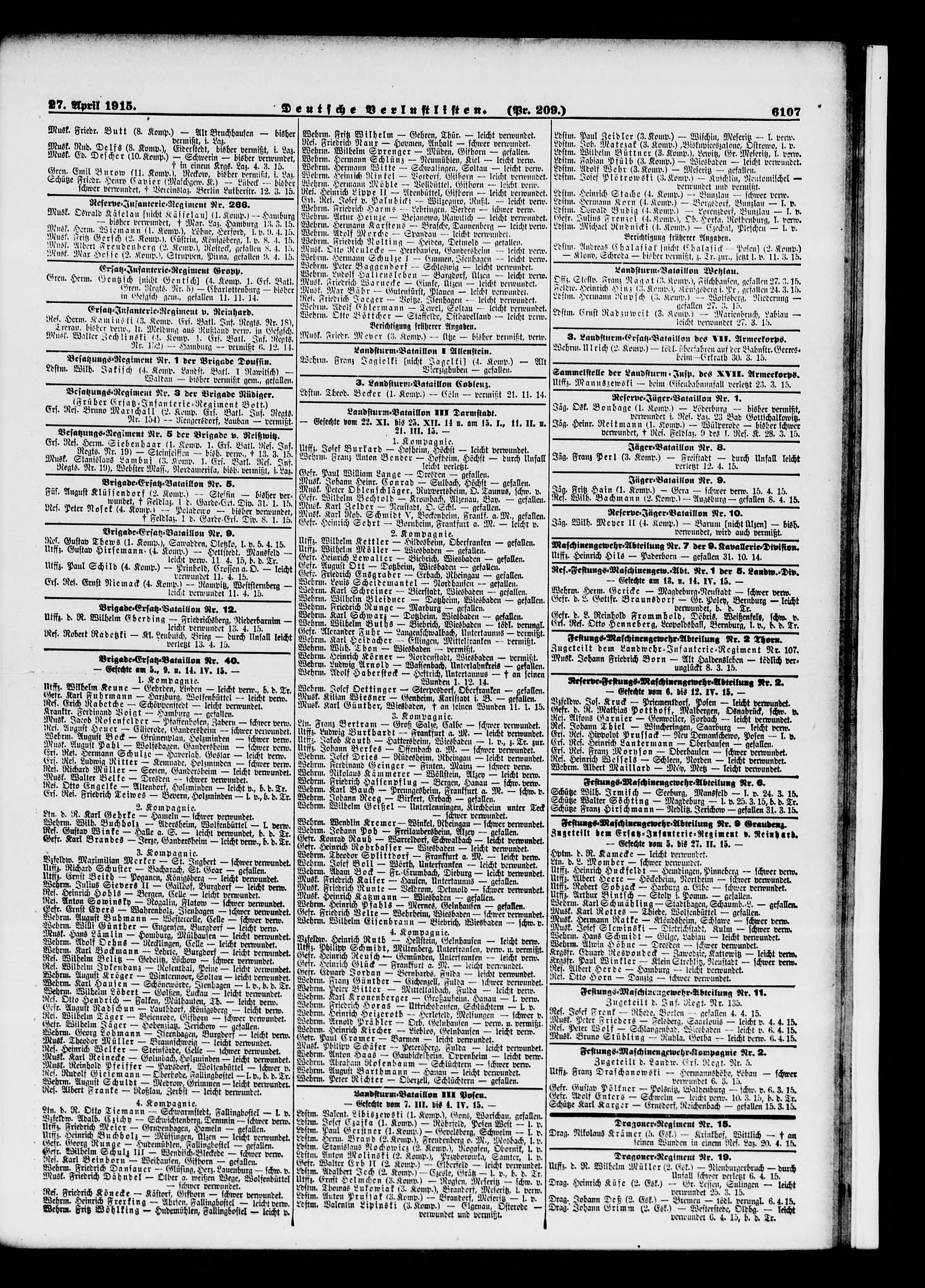 Verlustlisten 1. Weltkrieg, page 6107: Hallensleben Ludolf (Bargdorf, Ülzen)