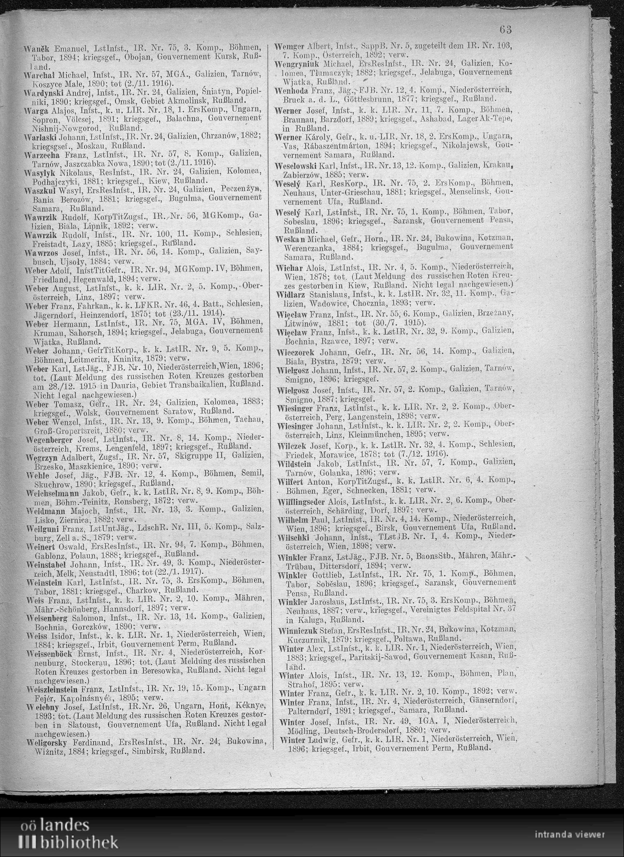 Verlustlisten Österreich-Ungarn 1. WK, page 547_63: Wieczorek Johann (Mannschaft) Verlustlisten Österreich-Ungarn 1. WK