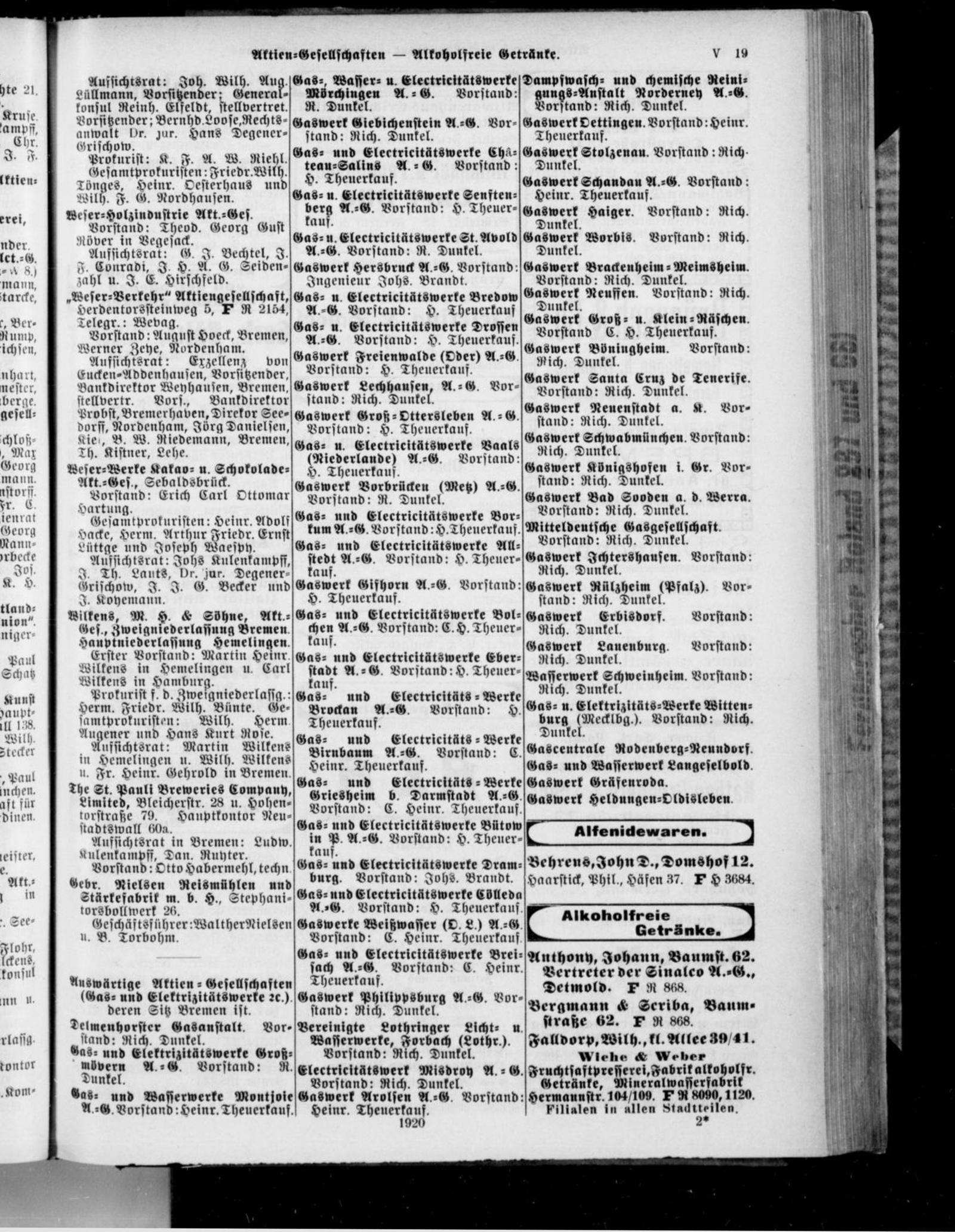 Adressbuch Bremen 1920, page GewVz-019: Degener-Grischow, Dr. jur. (Aufsichtsrat) Adressbuch Bremen 1920
