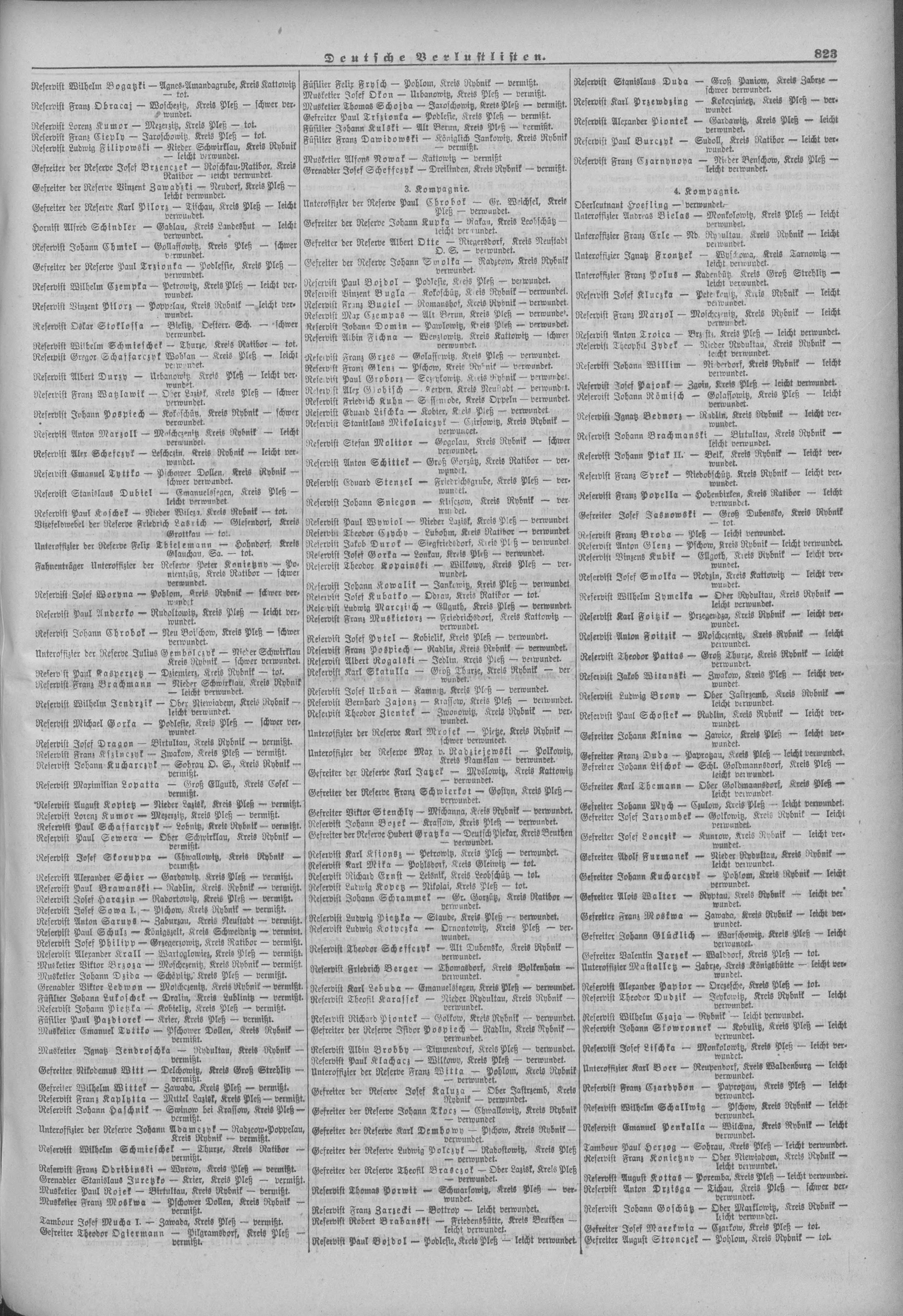 Verlustlisten 1. Weltkrieg, page 823: Kasperzetz Paul (Dziemierz, Kreis Rybnik)