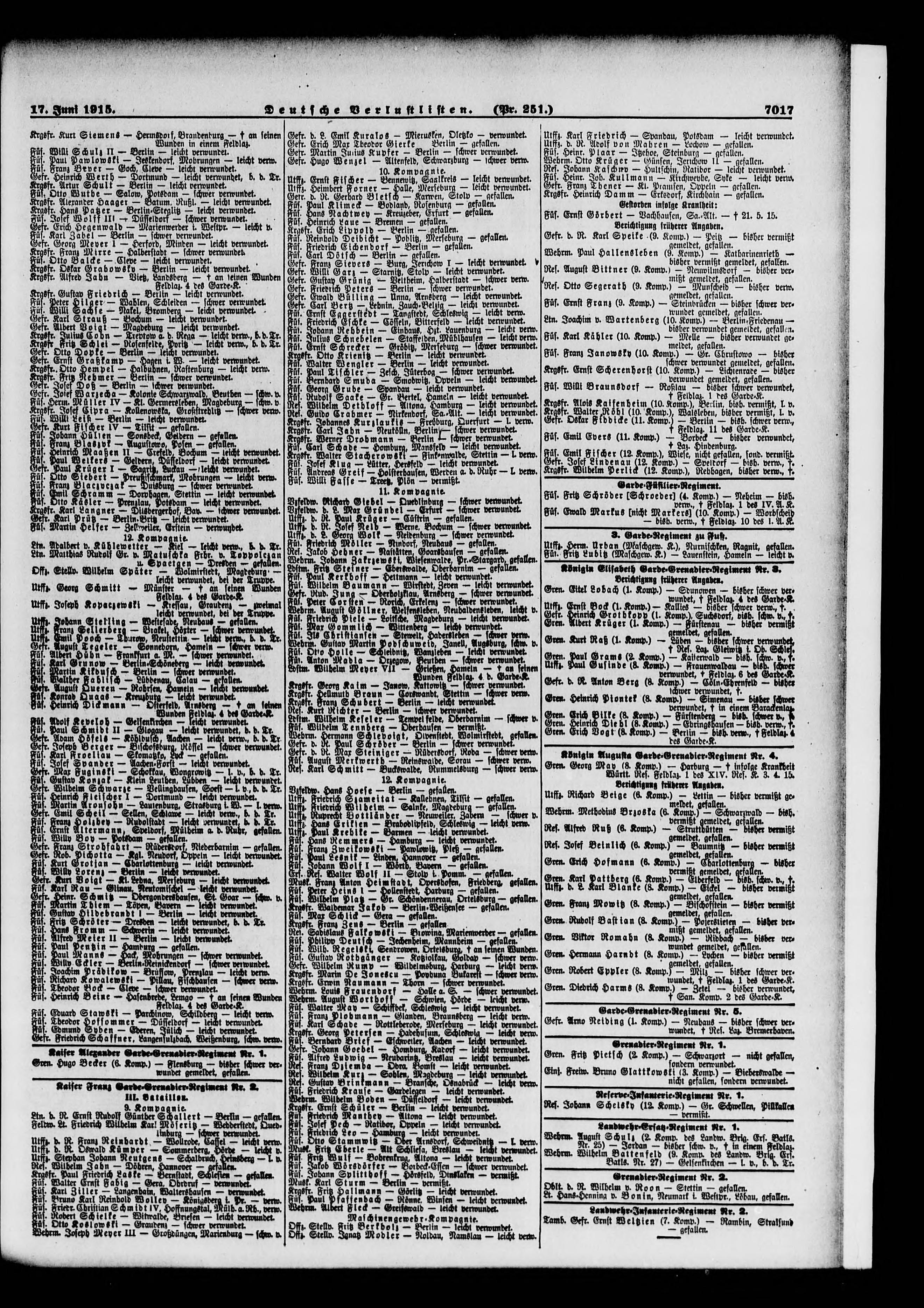Verlustlisten 1. Weltkrieg