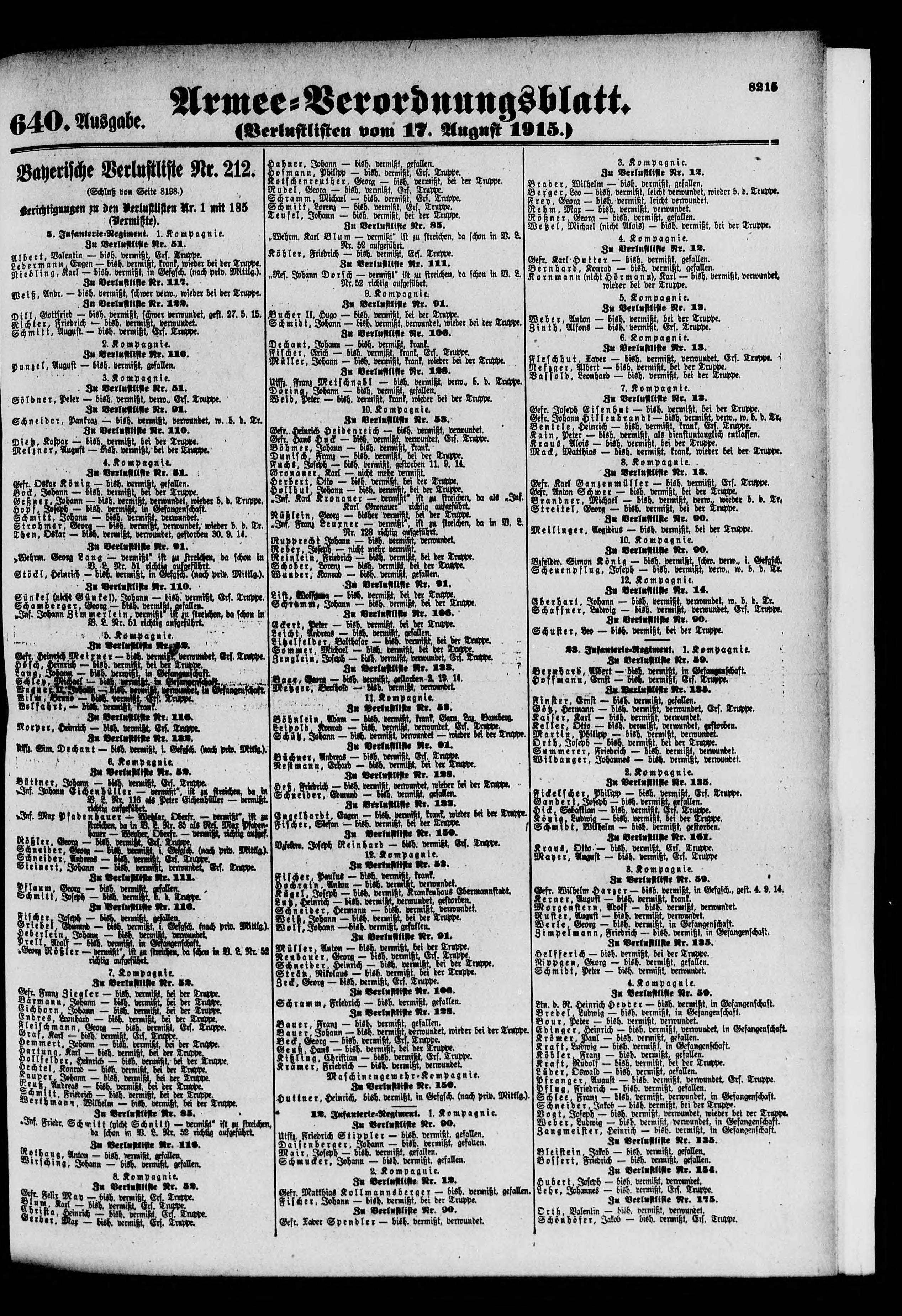 Verlustlisten 1. Weltkrieg, page 8215: Kronauer Karl () Verlustlisten 1. Weltkrieg
