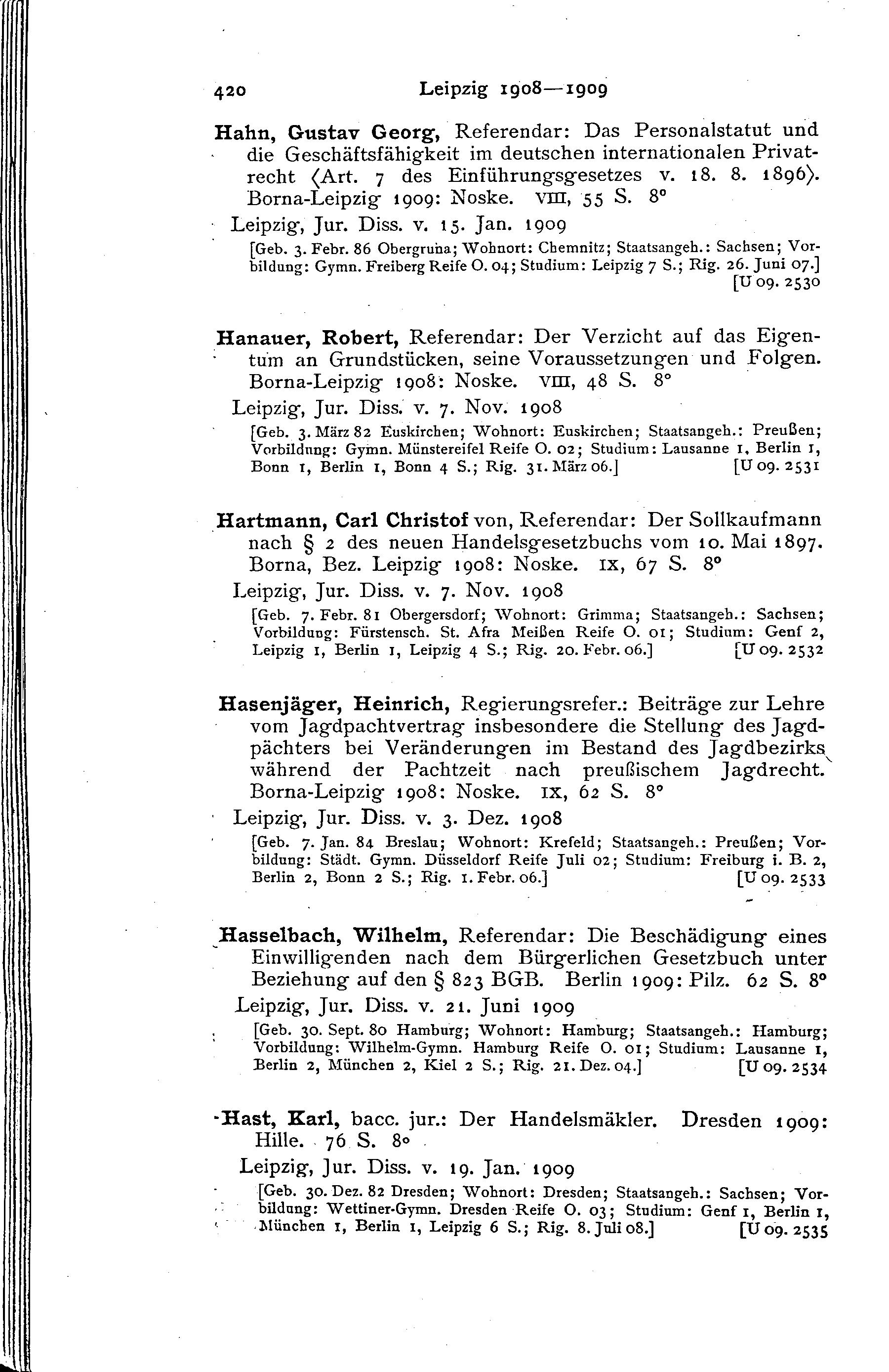 Jahresverzeichnis deutscher Hochschulschriften, page 190809-0420: Hasselbach Wilhelm (Referendar) Jahresverzeichnis deutscher Hochschulschriften