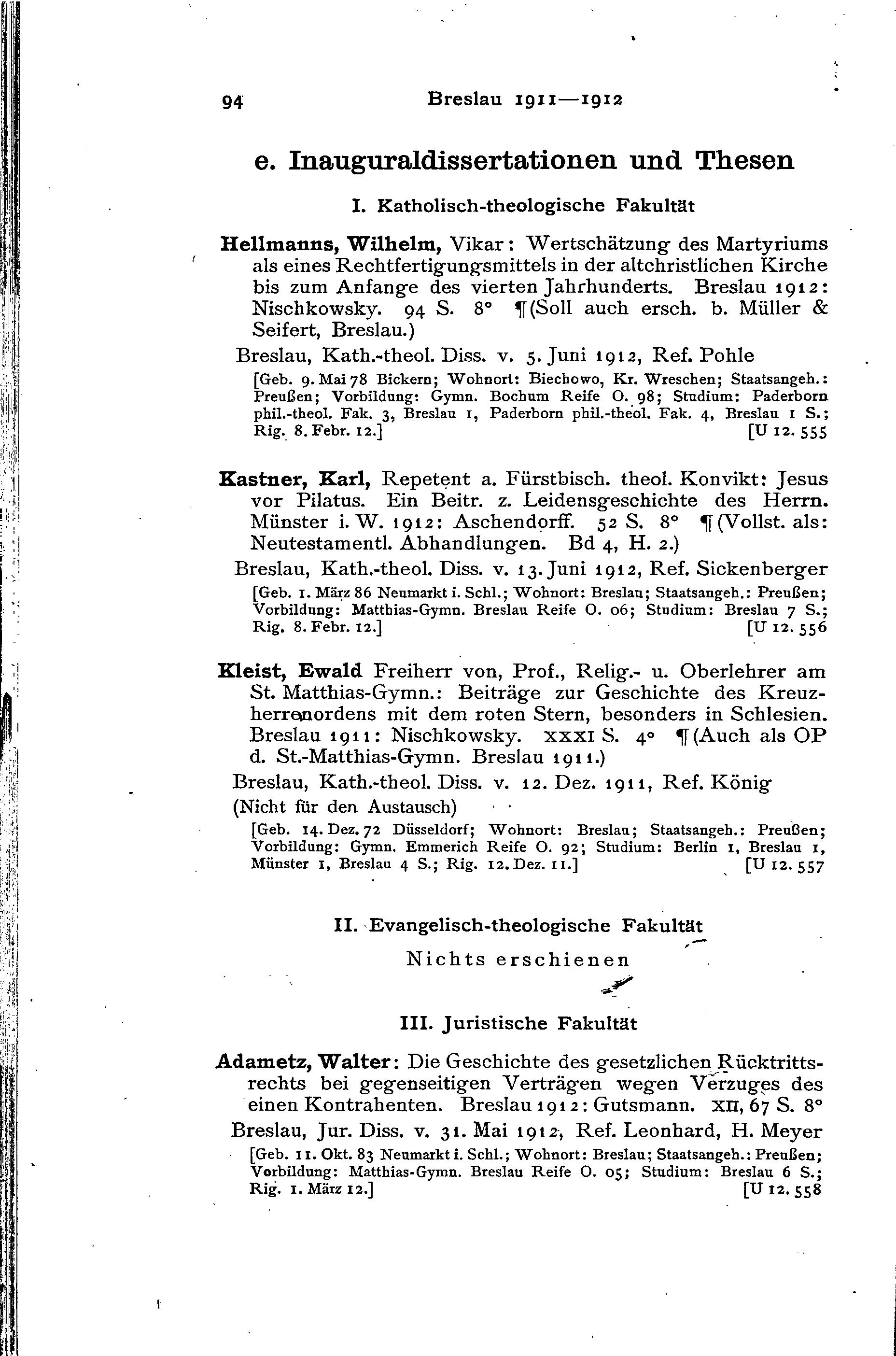 Jahresverzeichnis deutscher Hochschulschriften, page 191112-0094: Adametz Walter (null) Jahresverzeichnis deutscher Hochschulschriften