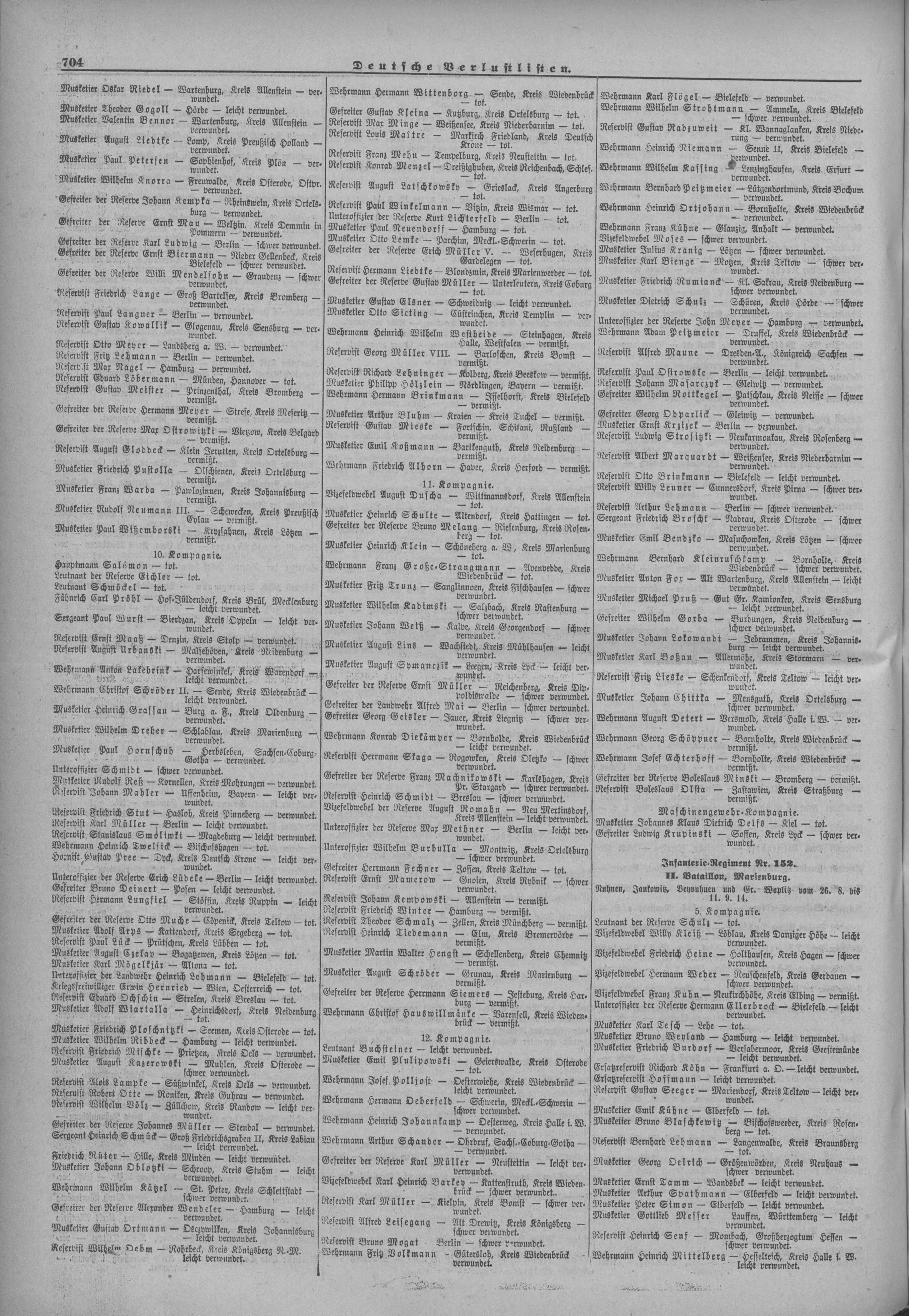 Verlustlisten 1. Weltkrieg, page 704: Mahler Johann (Uffenheim, Bayern)