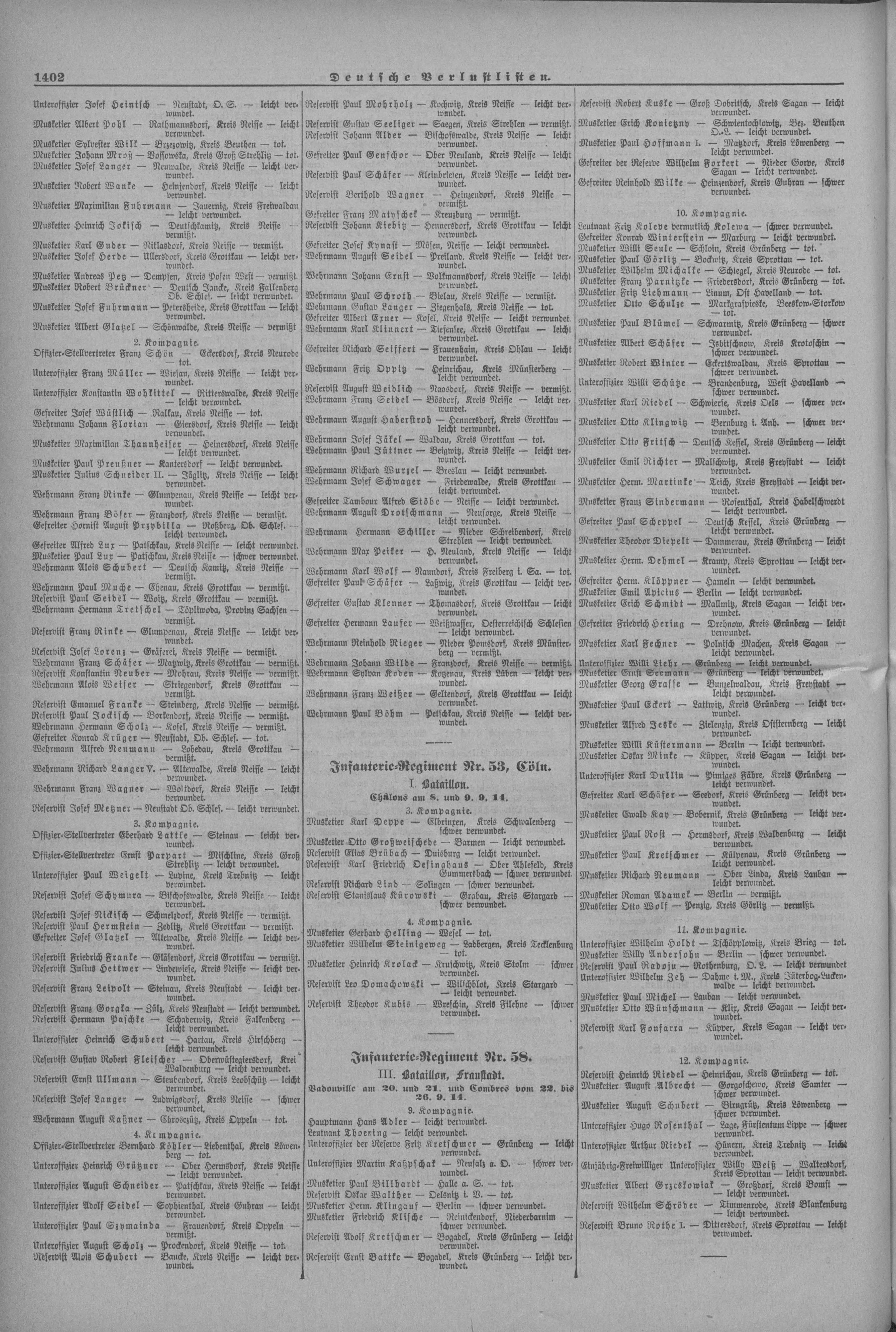 Verlustlisten 1. Weltkrieg, page 1402: Langer Gustav (Ziegenhals, Kreis Neisse)