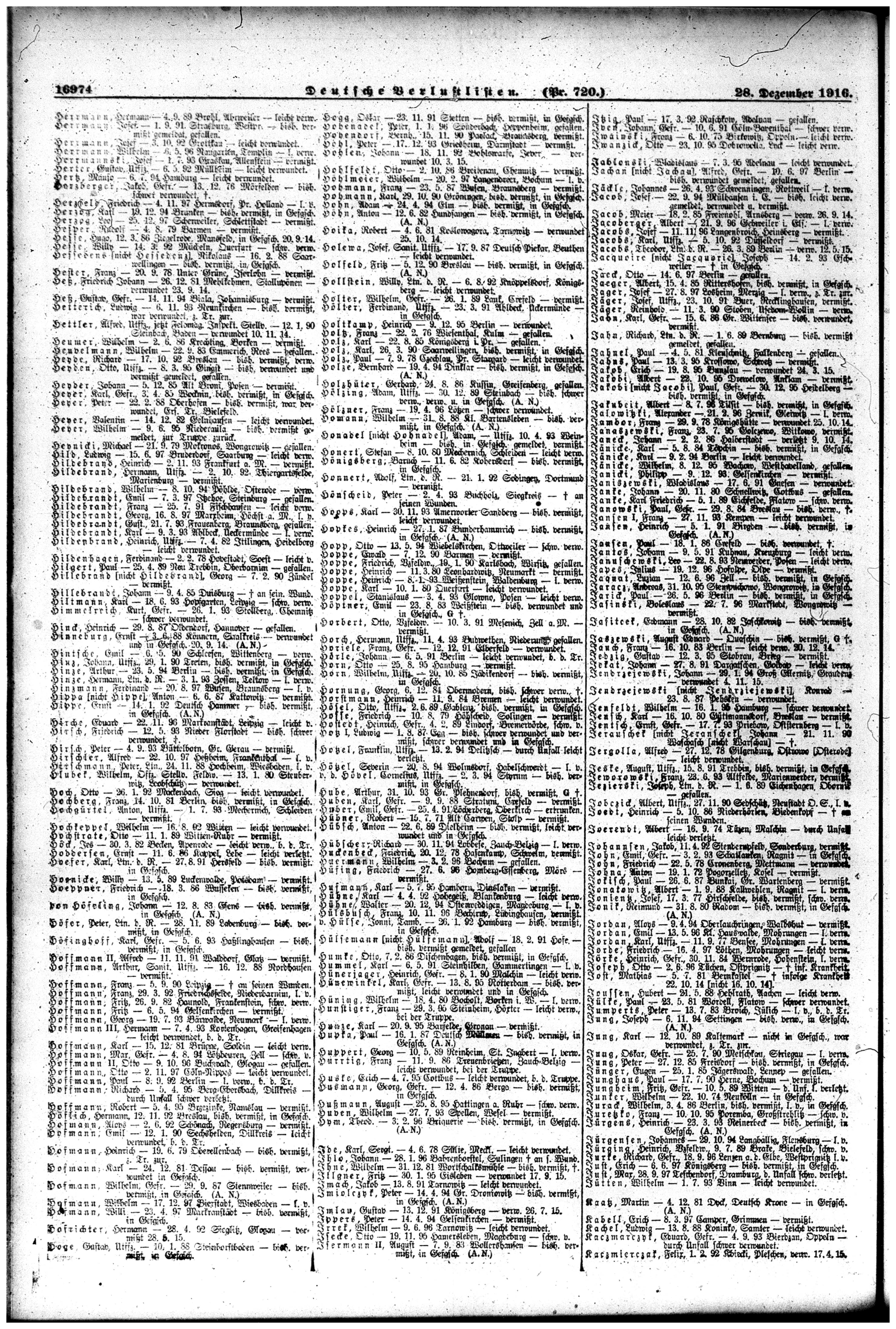 Verlustlisten 1. Weltkrieg, page 16974: Hönigsberg Baruch (Kohersdorf) Verlustlisten 1. Weltkrieg