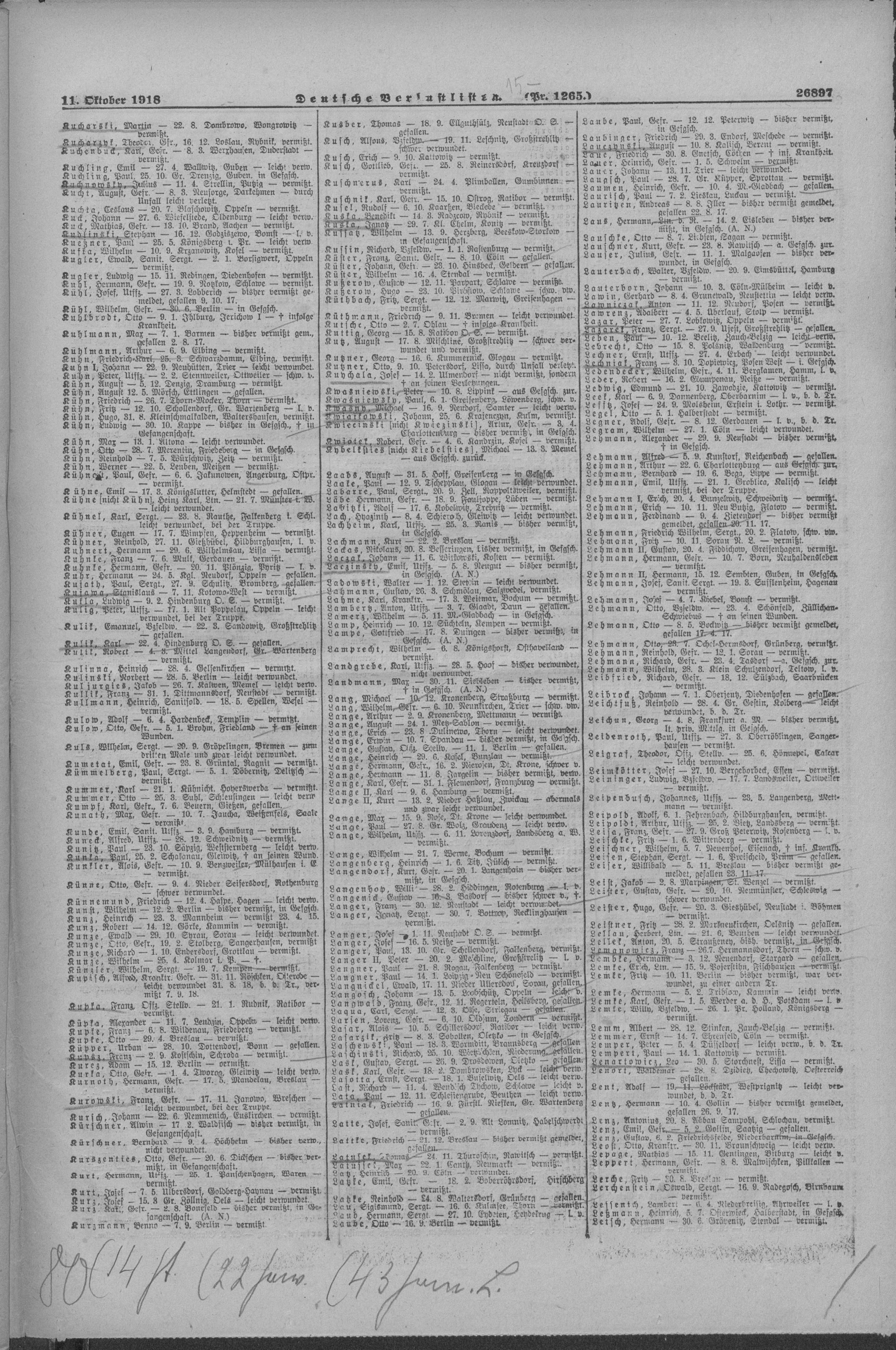 Verlustlisten 1. Weltkrieg, page 26897: Lauritzen Andreas (Iller)