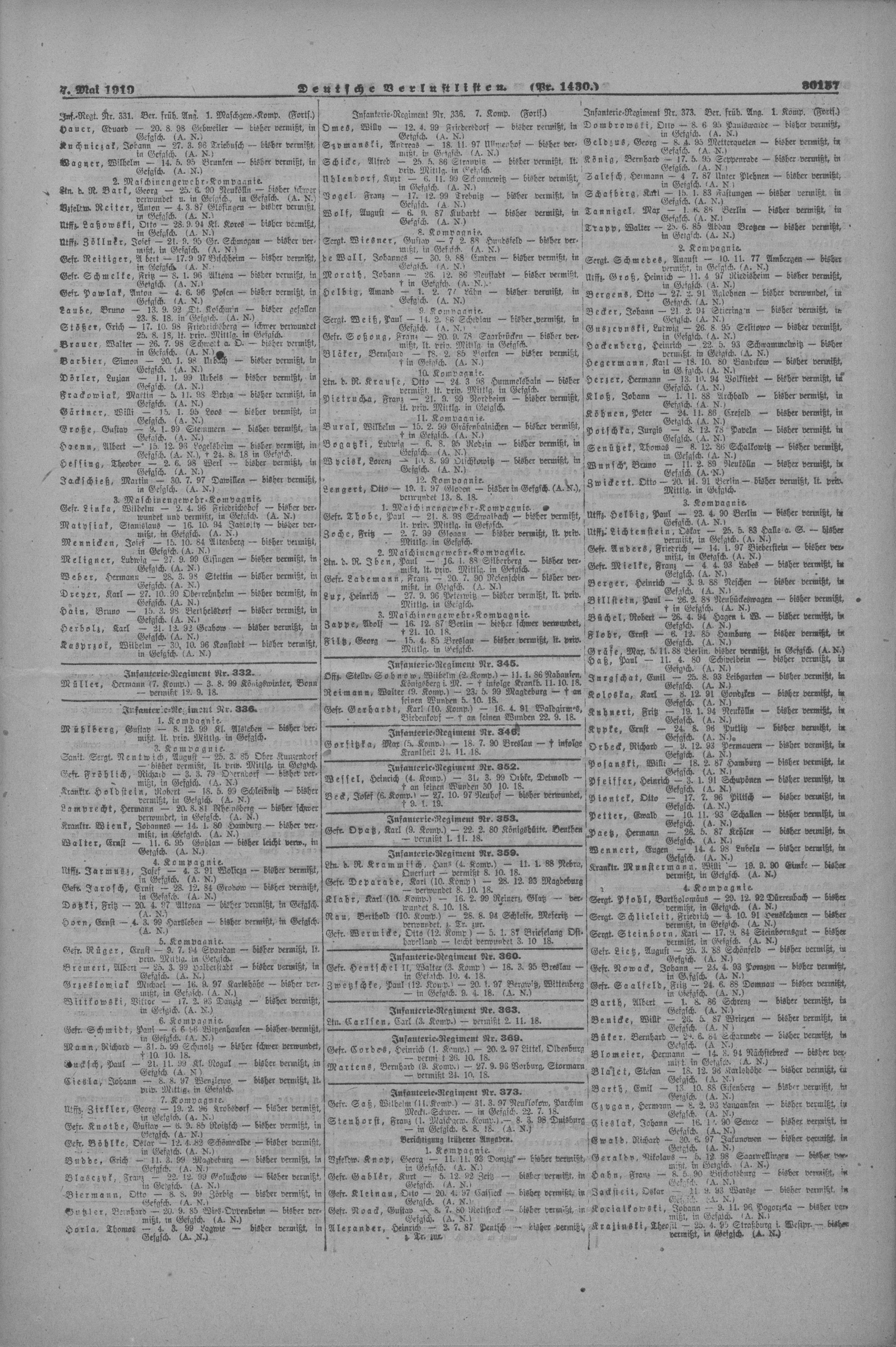 Verlustlisten 1. Weltkrieg