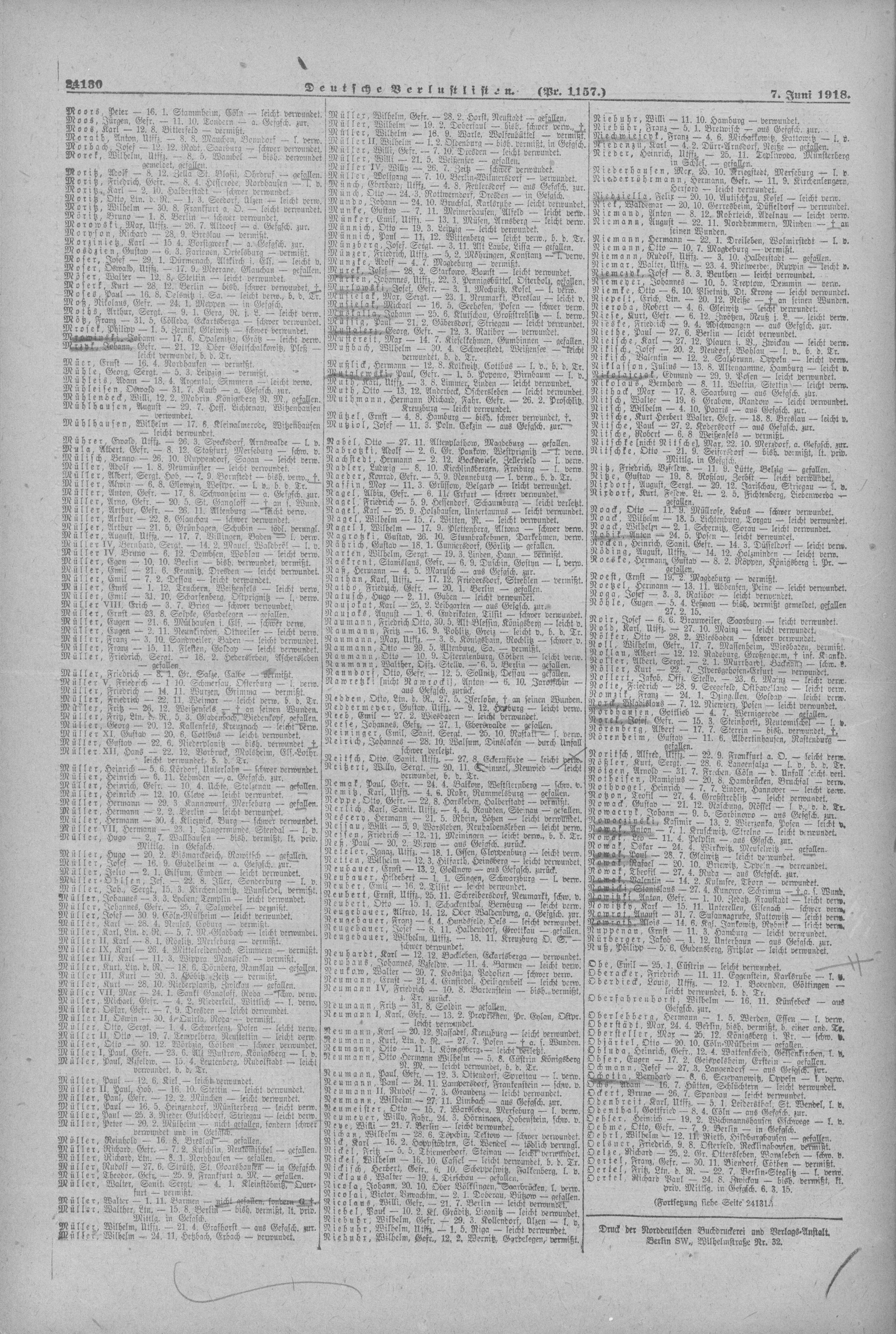 Verlustlisten 1. Weltkrieg, page 24130: Oberdieck Louis (Bovenden, Göttingen) Verlustlisten 1. Weltkrieg