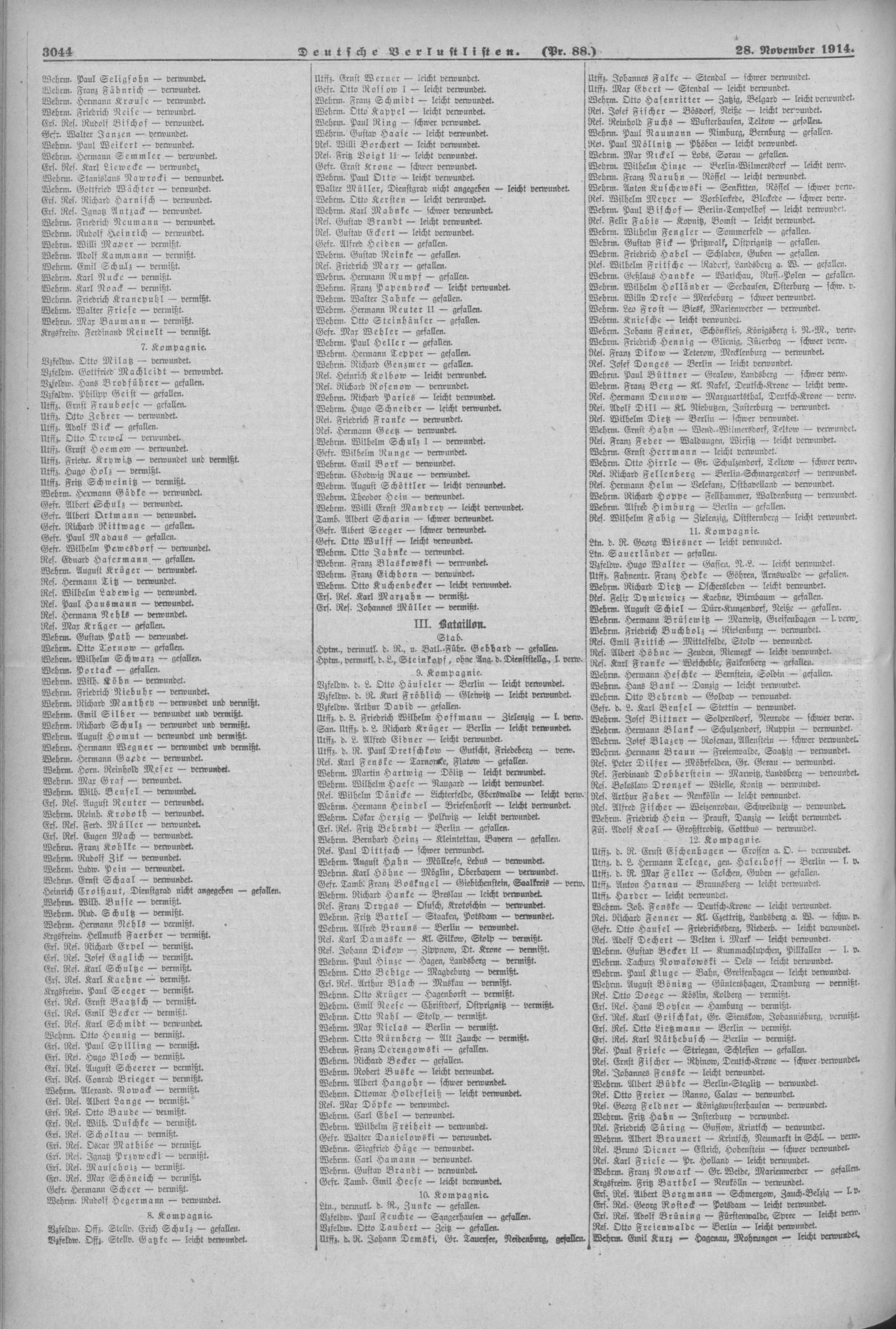 Verlustlisten 1. Weltkrieg, page 3044: Berg Franz (Kl. Nakel, Deutsch-Krone)