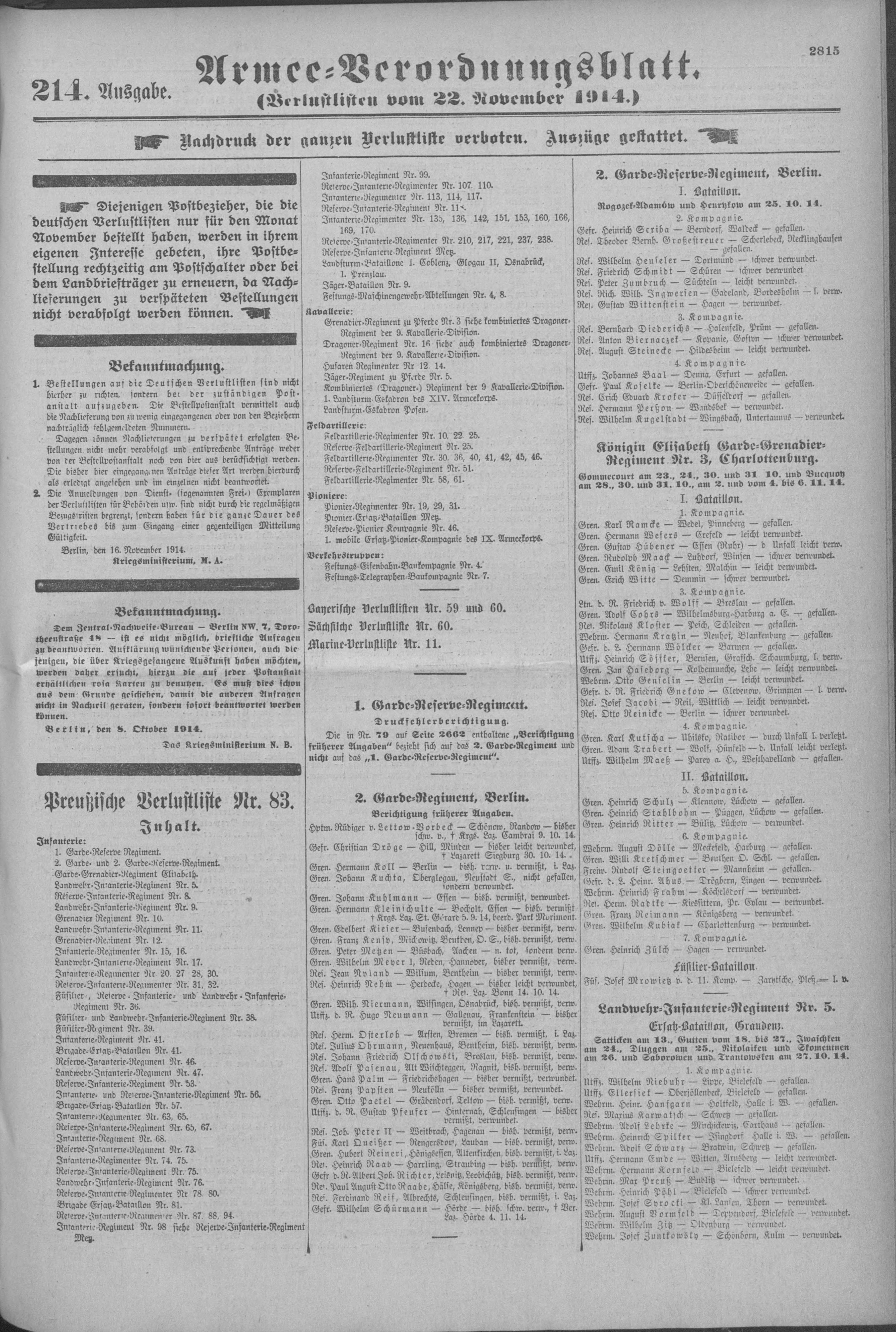 Verlustlisten 1. Weltkrieg, page 2815: Vormfeld August (Deppendorf, Bielefeld) Verlustlisten 1. Weltkrieg