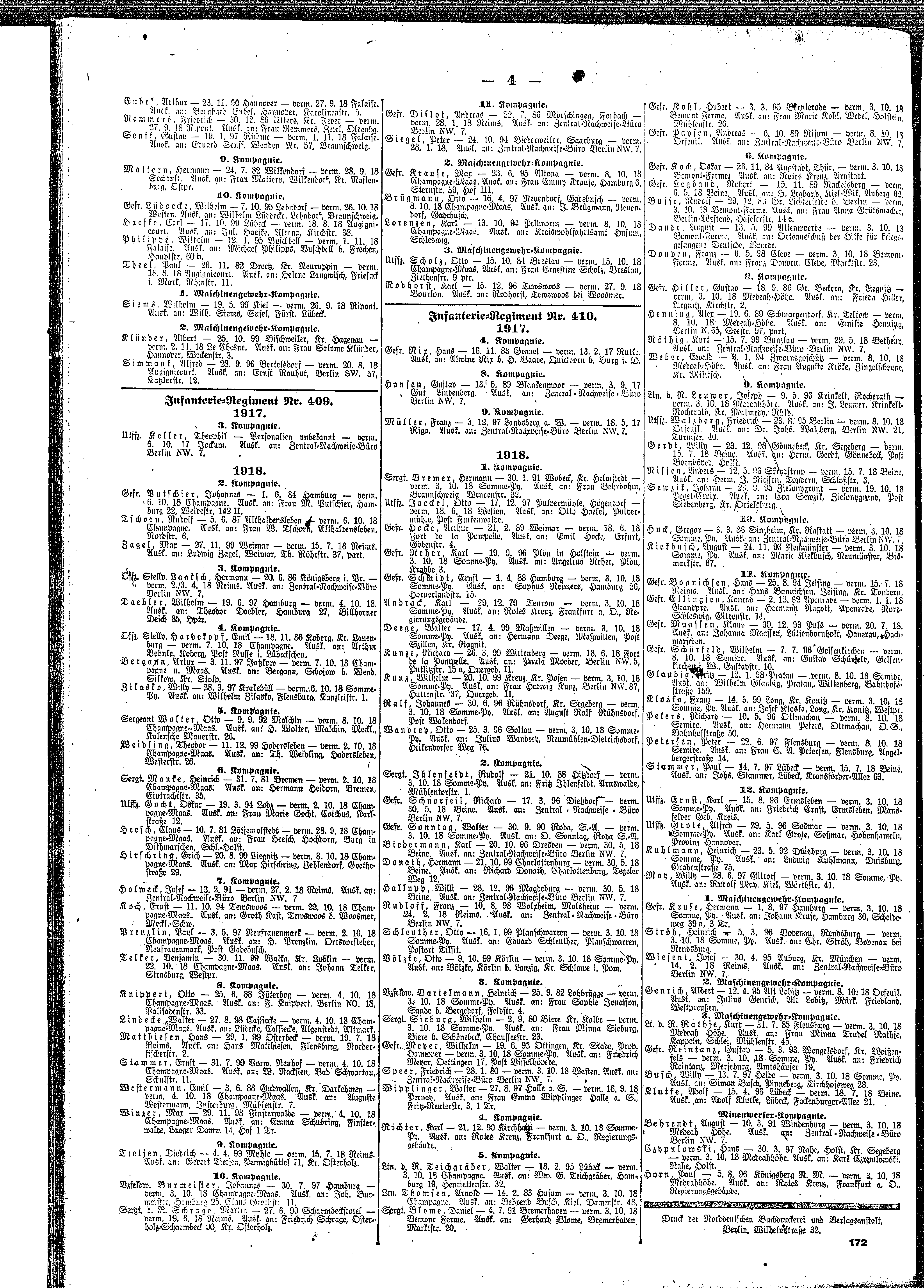 Vermisstenliste 1. Weltkrieg, page 172_04: Tschorn Rudolf (Althaldensleben) Vermisstenliste 1. Weltkrieg